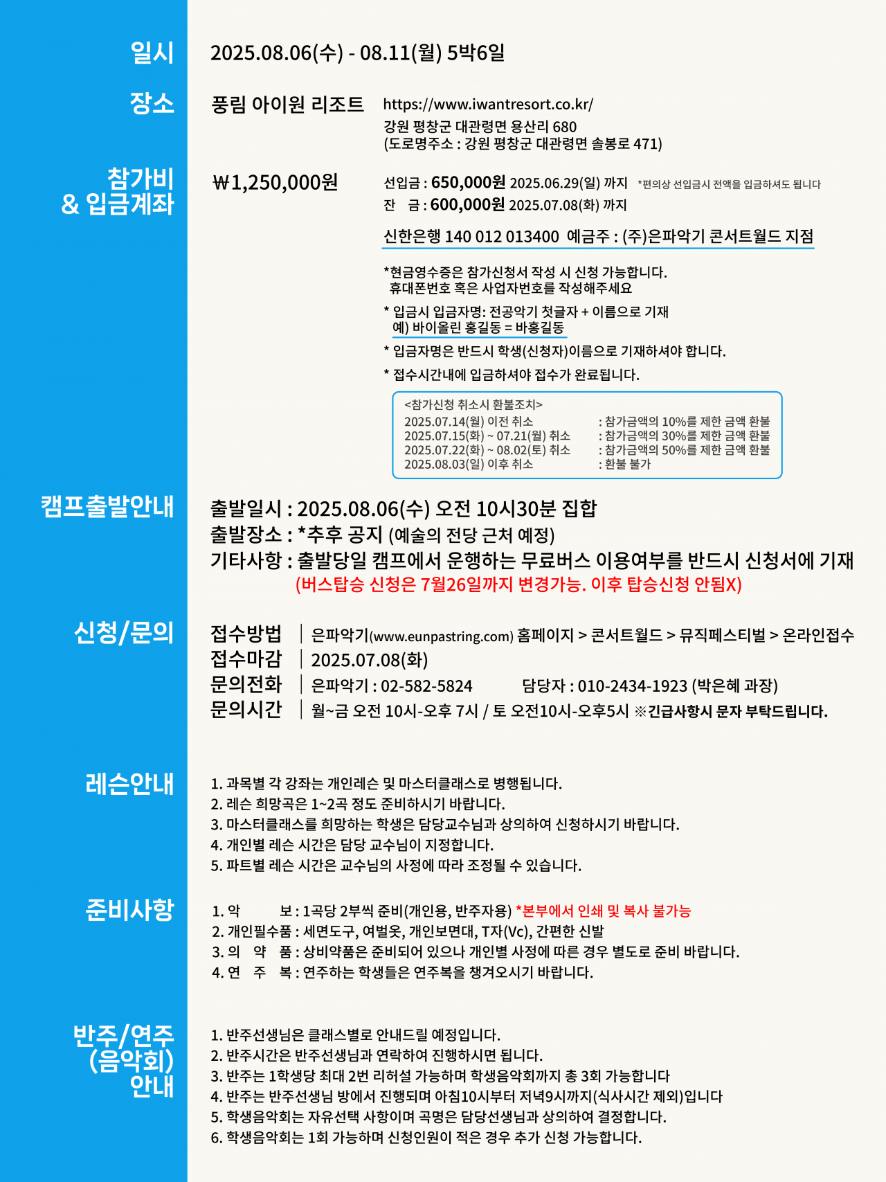 57회 콘서트월드 평창여름음악캠프 온라인신청