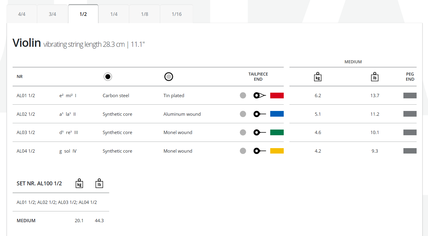 1/2 : 어린이를 위한 14인치용 또는 비올라 대신 4/4 바이올린으로 연습한다면 1/2 사이즈의 비올라 알파유현을 선택하세요.