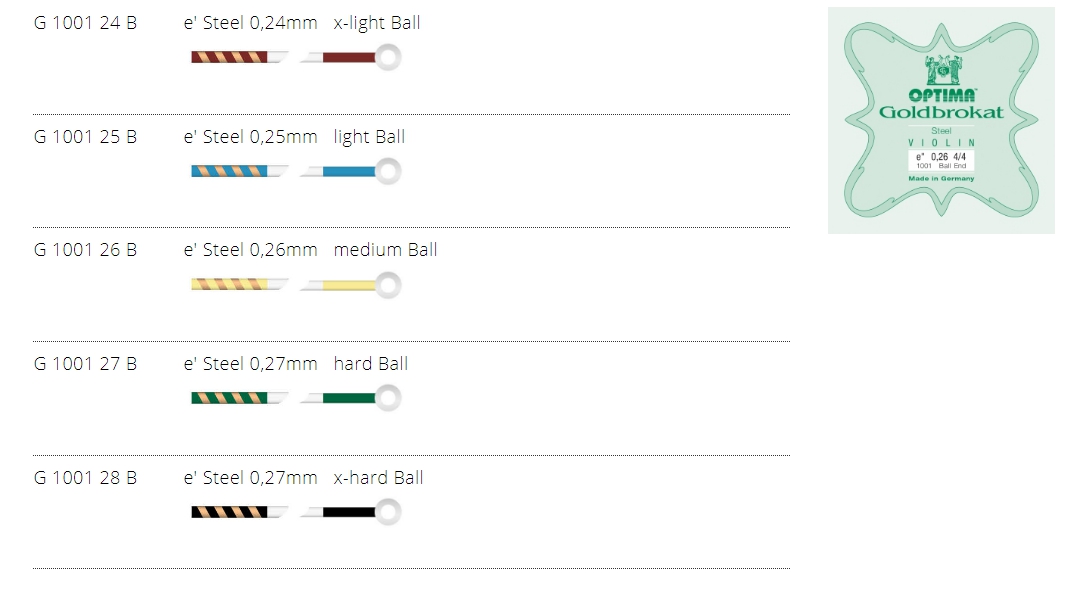 바이올린 란쯔너 옵티마 스틸 E현 0.26~0.27 볼/루프 4/4