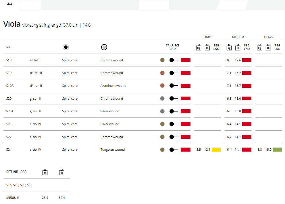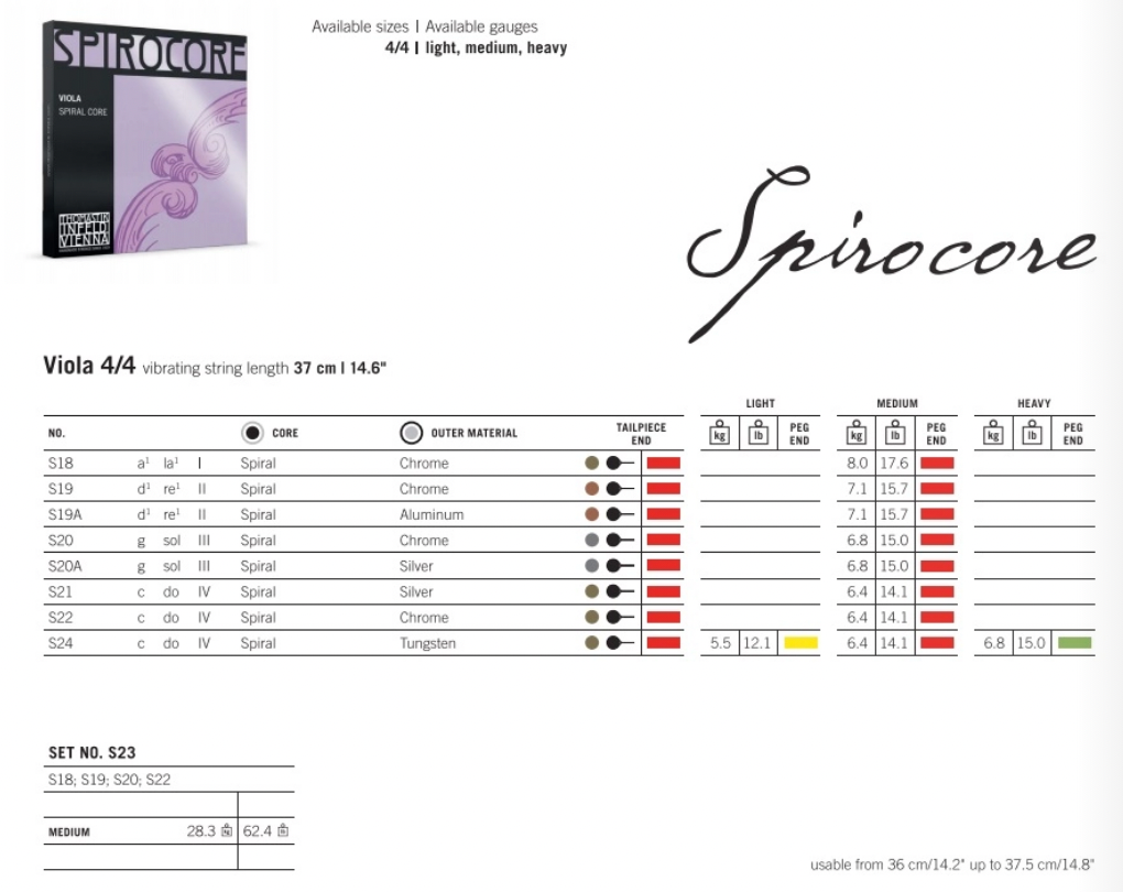 특히 Spirocore Tungsten C는 비올라 C현의 기준점처럼 사용되는 모델입니다.