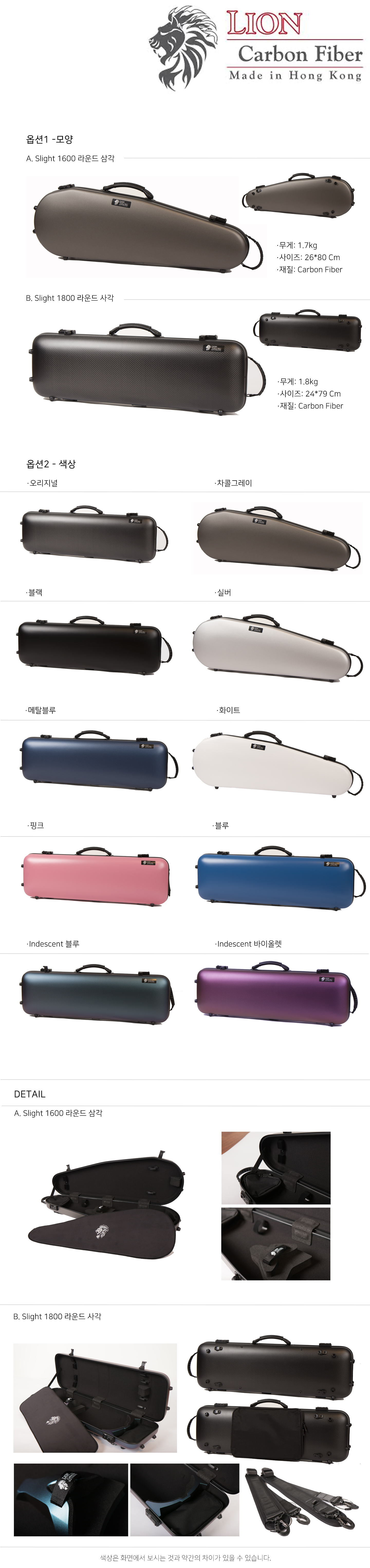 LION 모델1600 바이올린 케이스의 효율적인 다트 모양의 특징은 1.7kg 무게를 자랑합니다. 프리미엄 품질의 소재와 디자인이 특징인 1600은 최소한의 무게를 느낄 수 있으며 연주자들에게 완벽한 옵션 입니다.