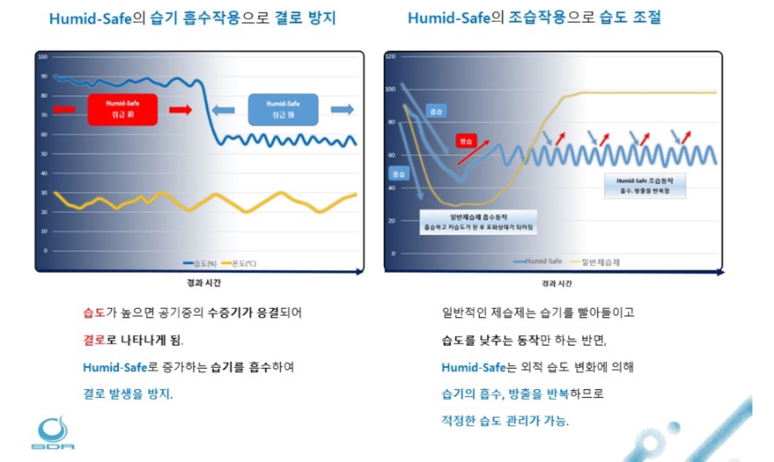 높은 습도에서는 습기를 흡수하고 낮은 습도에서는 습기를 방출하여 일정습도로 조절