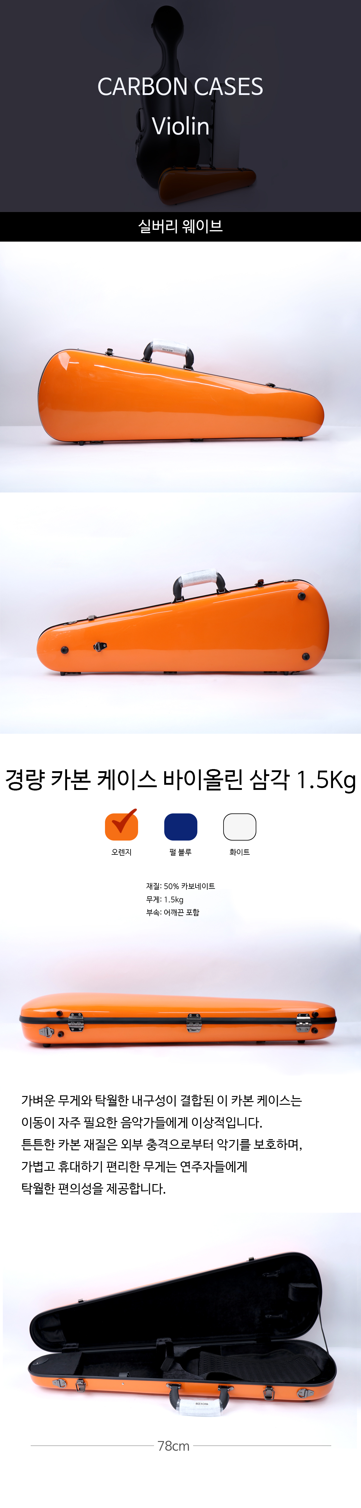 가벼운 무게의 카본 50% 삼각 바이올린 케이스입니다.