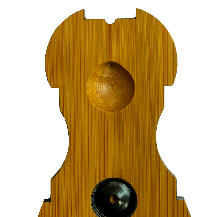 마무리를 대나무로 처리하여 가볍고 단단하며 대나무의 속살의 결을 그대로 살리었습니다. 우아한 첼로 내부 메이플 모양 디자인 기반으로 엔드 핀에 고무 캡을 한 것과 뾰쪽한 쇠로 된 2가지 유형의 엔드 핀을 사용하도록 2가지 스타일의 구멍을 만들었습니다.