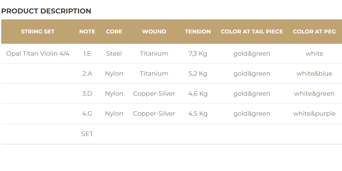 오팔 티탄 바이올린 현은 스위스에서 디자인한 수제 합성 코어 현입니다.