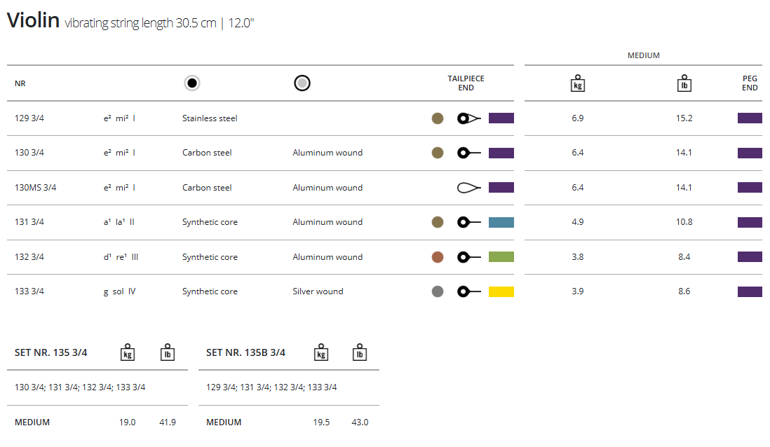 각 현들의 상호간 완벽한 밸런스, DOMINANT보다 어두운 음색의 사운드, 활의 압력에 대한 뛰어난 내구성, DOMINANT보다 넓은 음역대의 사운드, 맑고 큰 강력한 보이스.