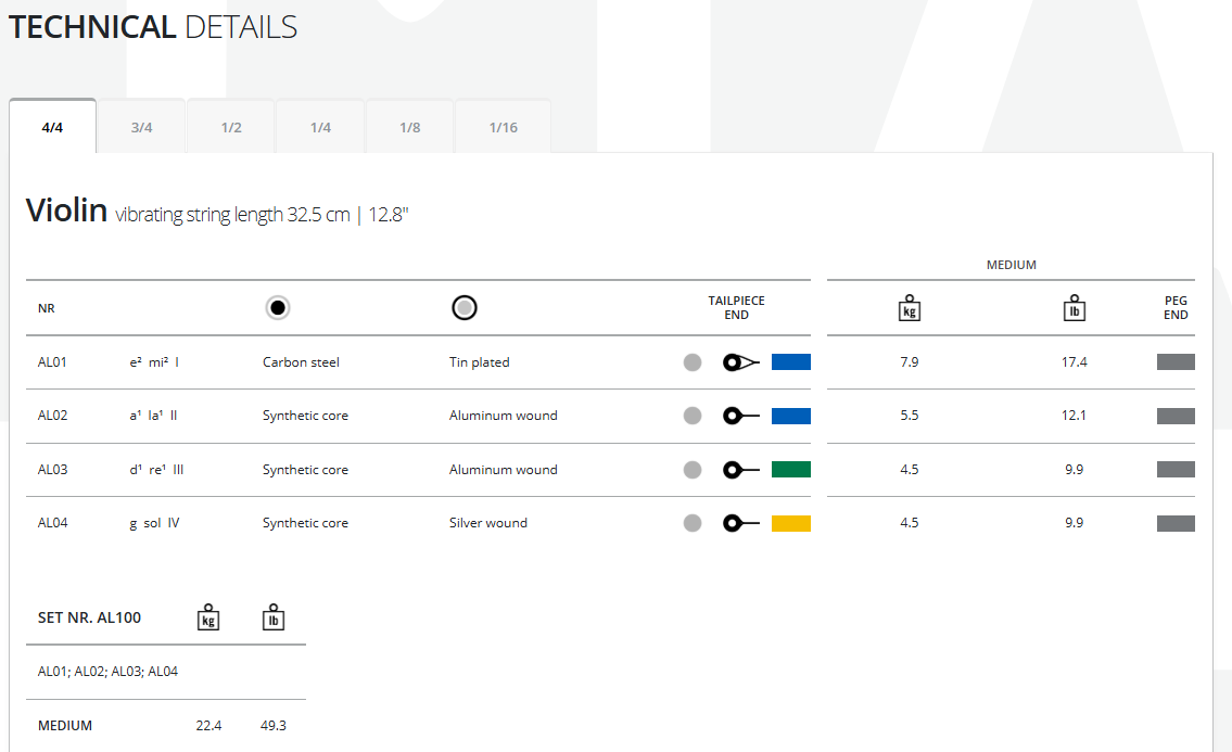 토마스틱 알파유 바이올린 스트링 세트
